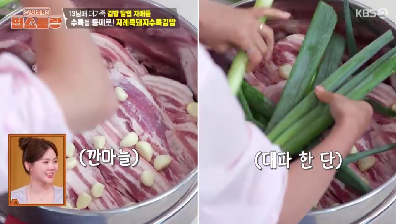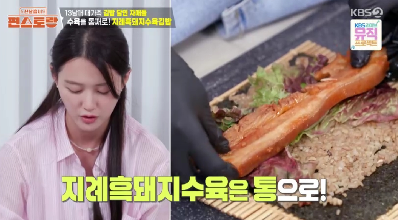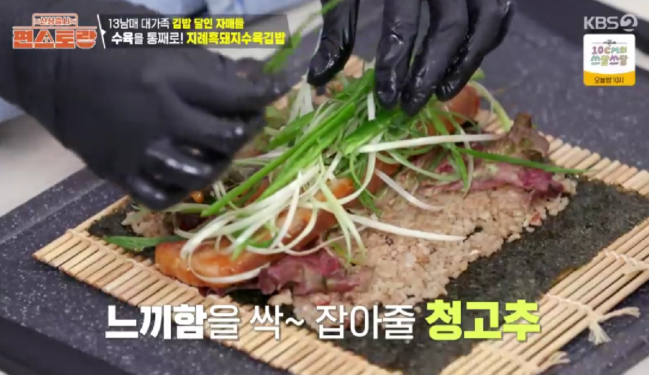 그런데 '만능 국민장녀' 남보라 님이 선보인 지례흑돼지수육김밥을 보고 눈이 번쩍 뜨였습니다. 쌈 채소와 수육을 한 번에 넣어 만든 김밥이라니, 그야말로 완벽한 조합이었죠!
