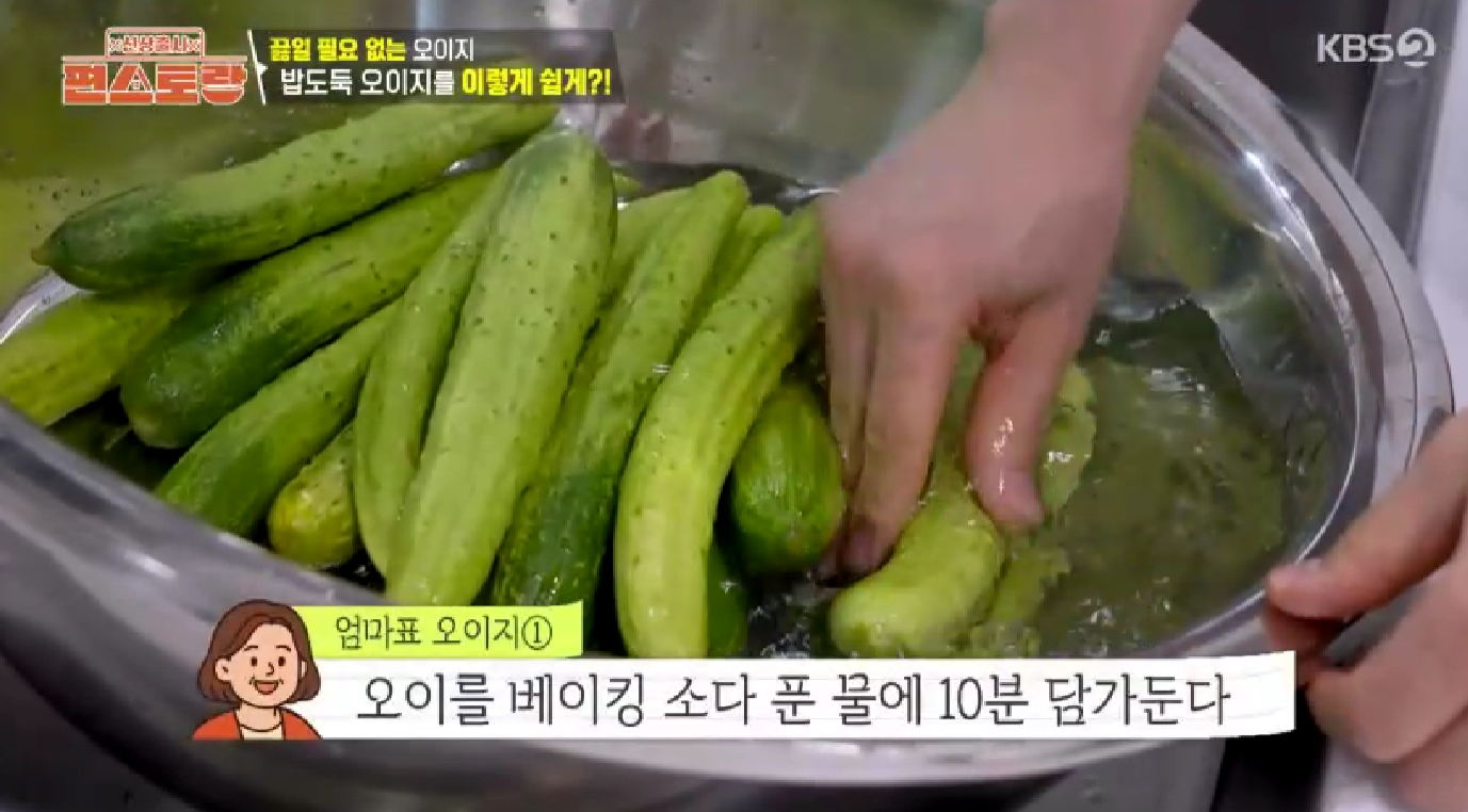 - 베이킹소다를 푼 물에 오이를 10분간 담가둡니다.