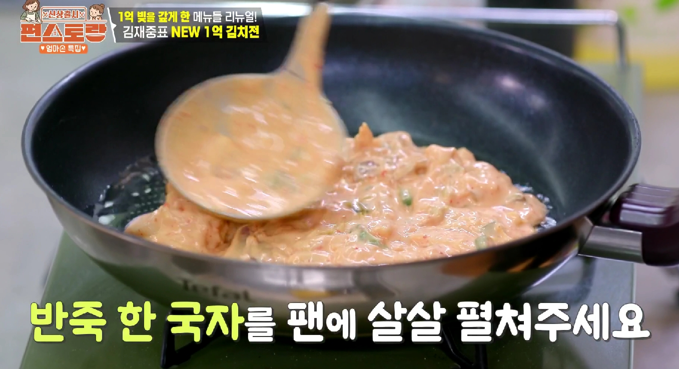 씹을수록 올라오는 오징어의 진한 감칠맛이 신김치의 매콤함, 계란의 고소함과 완벽한 조화를 이뤘습니다. 평소 만들던 김치전과 차원이 다른 감칠맛이었다. 김재중 마른오징어 김치전 레시피는 자취생의 퀸카가 될 만하다.