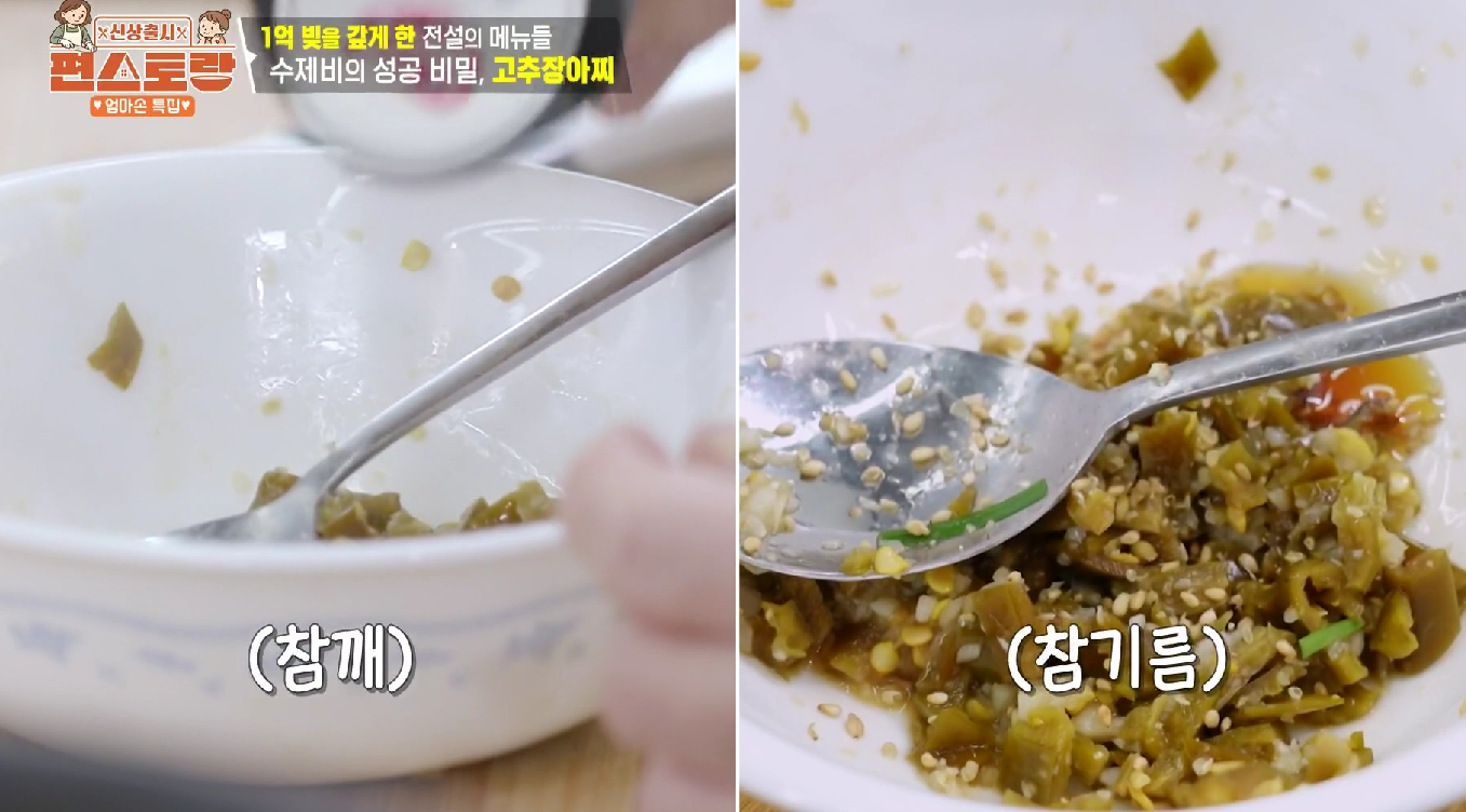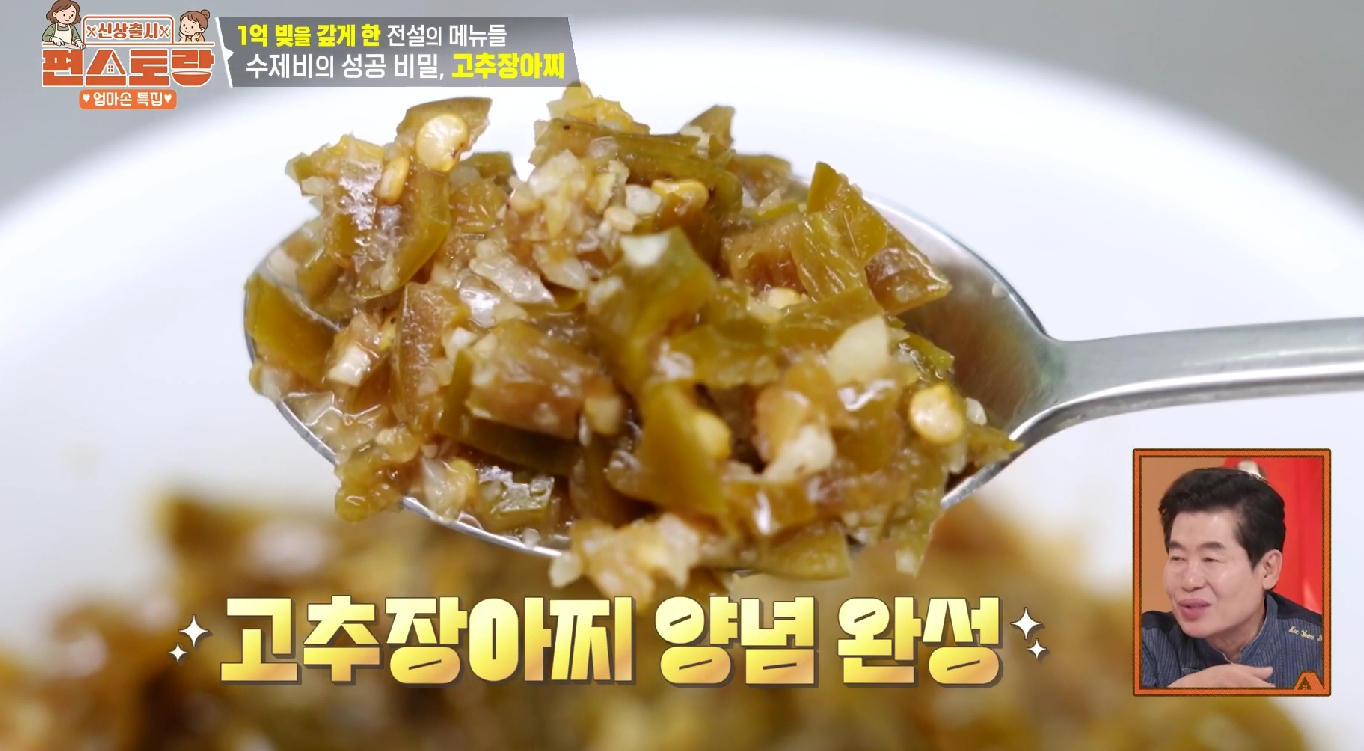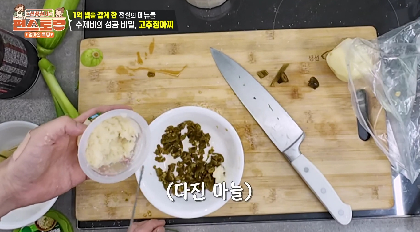 육수 재료부터 심상치 않았지만, 이 레시피의 진짜 주인공은 따로 있습니다. 바로 '고추장아찌 양념장'이죠. 평범한 국물 요리를 일거에 '1억 빚 갚아준' 대박집 메뉴로 승격시키는 마법의 조미료입니다.
