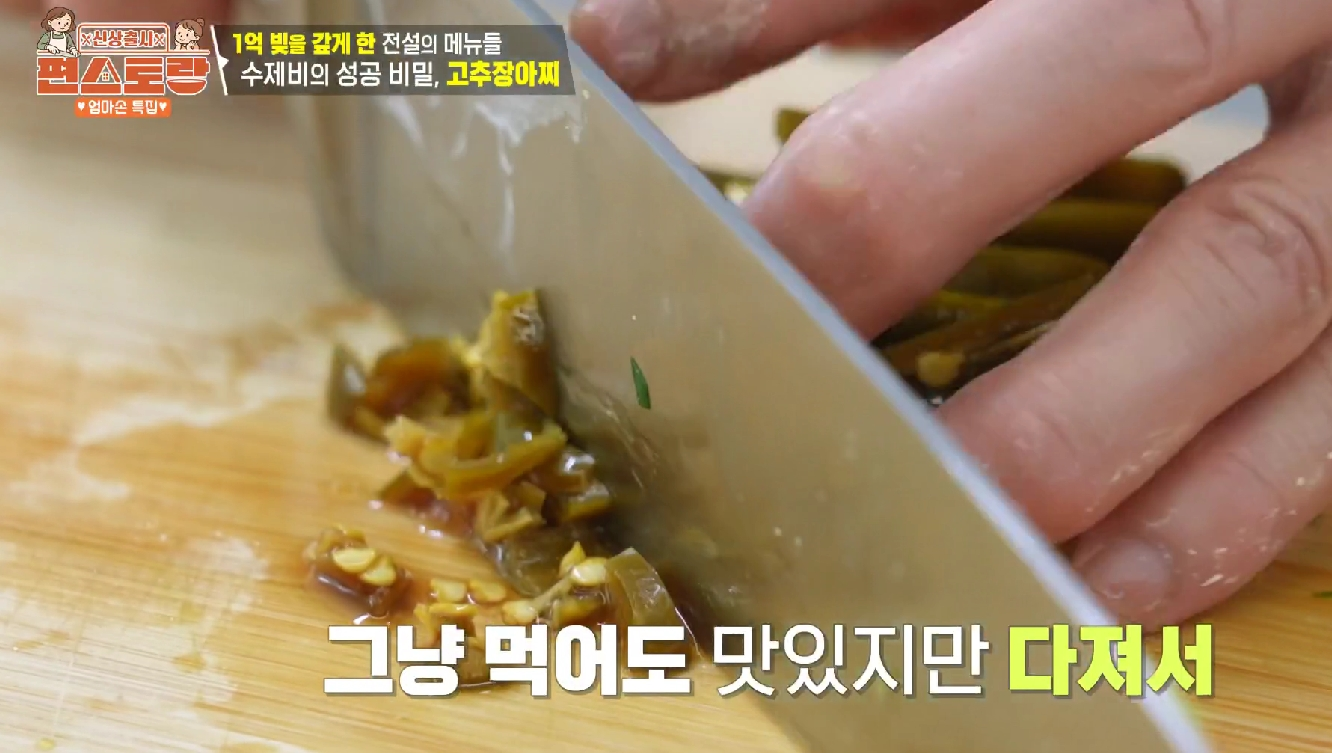 장아찌의 매콤새콤한 맛이 깊은 육수와 만나면서, 느끼함 없이 깔끔하고 중독성 있는 매운맛이 탄생했죠. 정말이지 '1억 빚 갚은 맛'이라는 말이 빈말이 아니었다. 김재중 수제비 레시피 덕분에 최고급 국물 요리를 맛봤다.