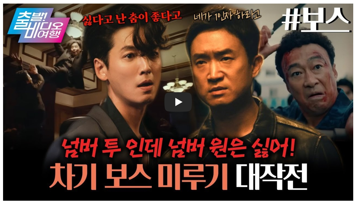 극은 세력 전쟁보다 '양보 전쟁'의 아이러니를 강조하며, 각자의 꿈을 위해 보스 자리를 미루는 필사적 대결을 유쾌하게 그려냅니다. 순태의 중국집 열정과 강표의 탈출 욕구가 충돌하고, 판호의 엉뚱함이 웃음을 더하죠.