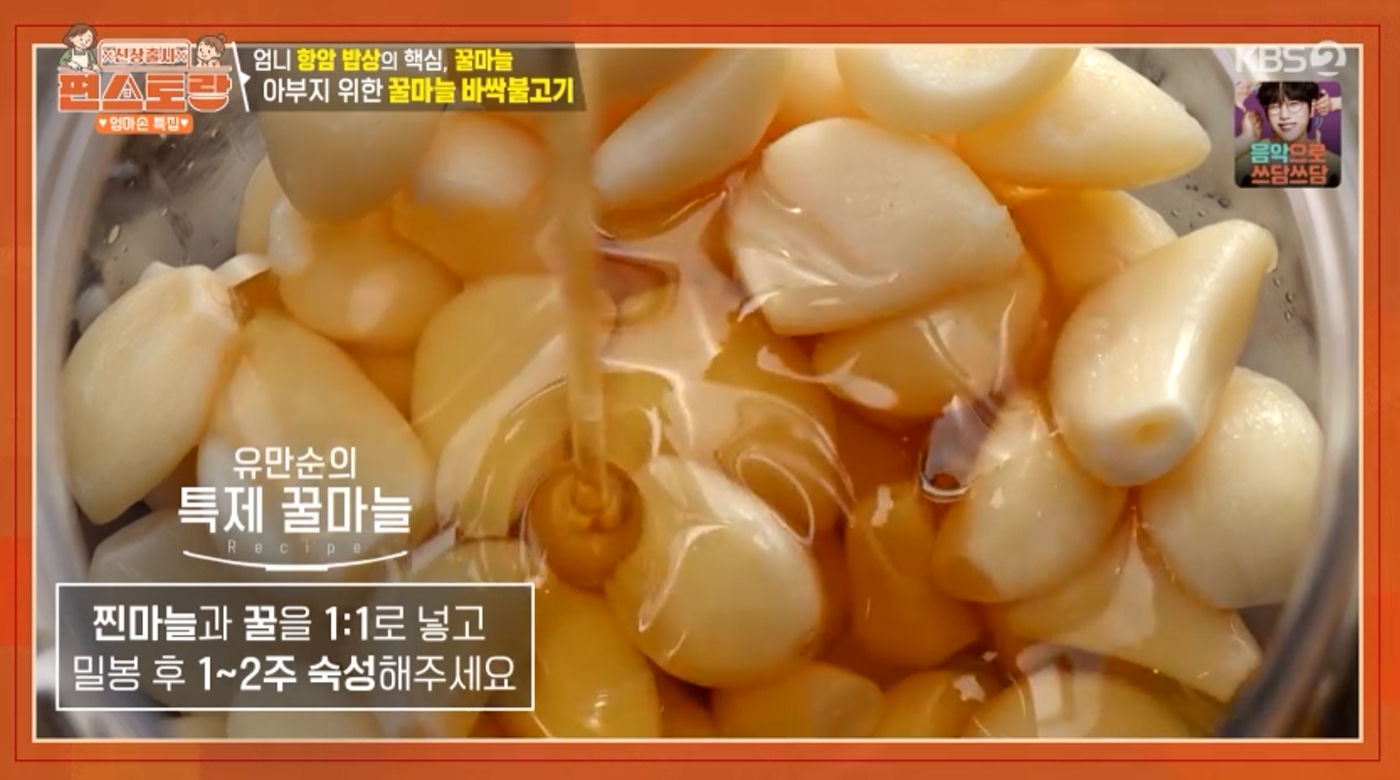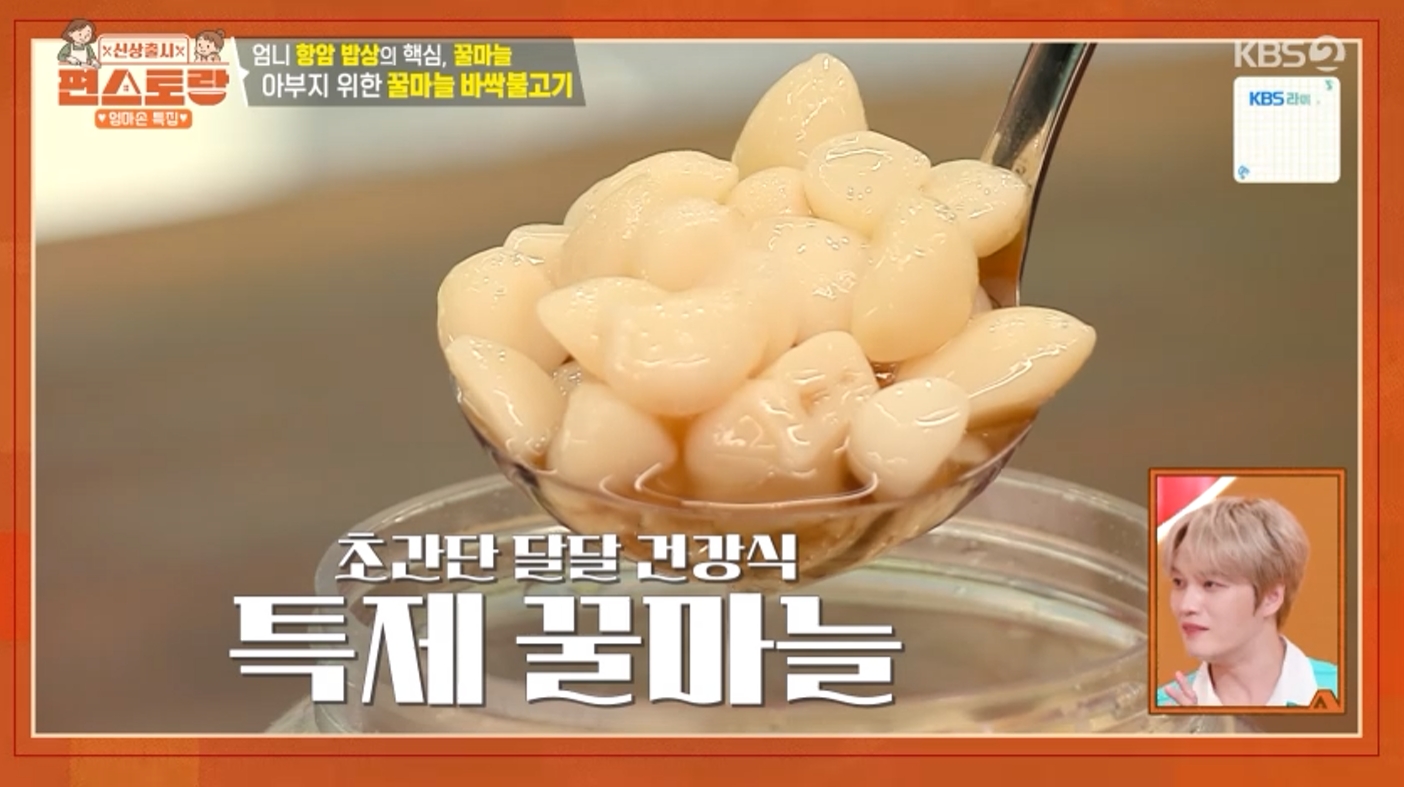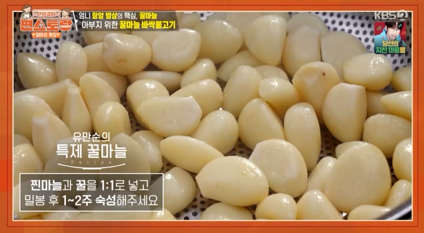 최근 '손맛 요리사' 김재중 님이 아버지의 건강을 위해 어머니가 꾸준히 만들어 주신다는 '항암 밥상' 메뉴를 공개했습니다. 바로 꿀마늘입니다.