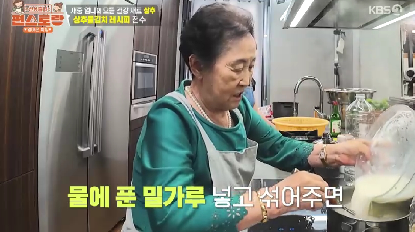 🔥 김재중 상추물김치 레시피 만드는 법 – 맑은 국물의 비결 (밀가루풀 & 거름망) 💧