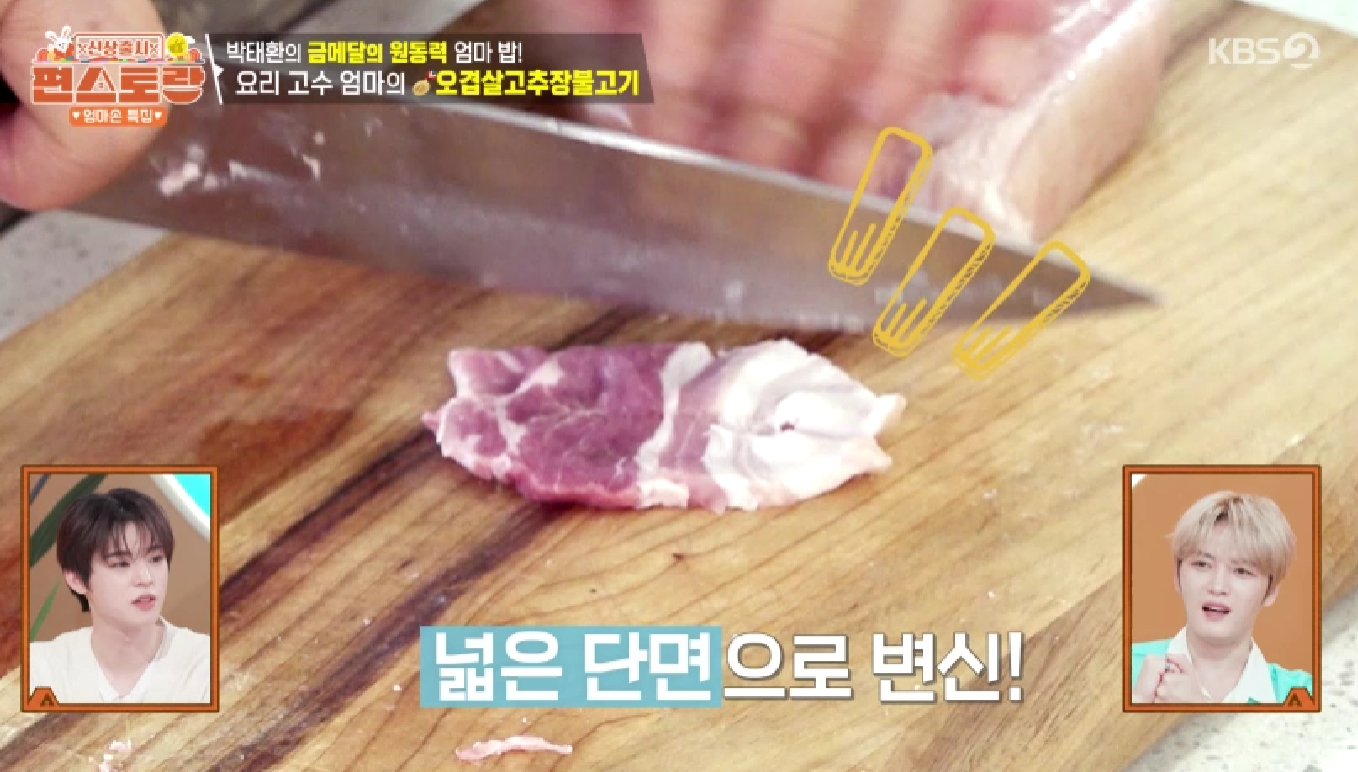 - 오겹살은 일반 삼겹살보다 껍질의 쫄깃한 식감이 강합니다. 먹기 좋은 크기로 도톰하게 잘라야 볶았을 때 식감을 잃지 않습니다.