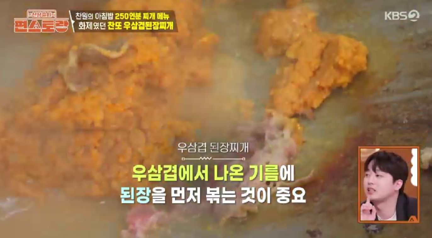 그러던 중 '찬또셰프' 이찬원 님이 공개한 우삼겹된장찌개 비법을 보고 무릎을 탁 쳤습니다. 핵심은 바로 '우삼겹 기름에 된장을 볶는 것'!