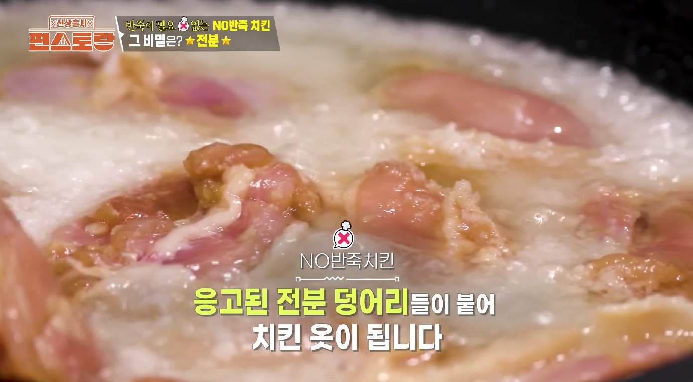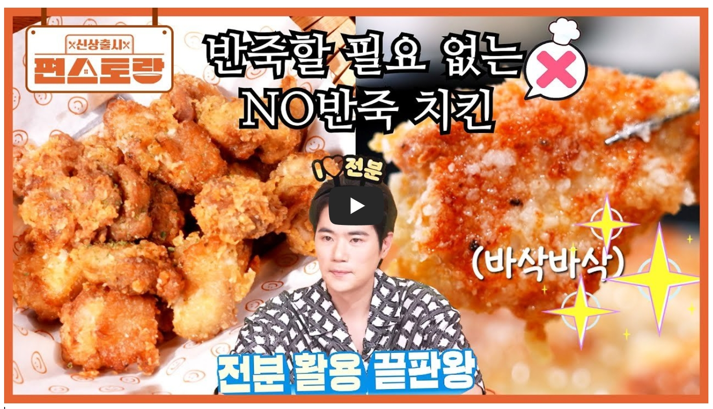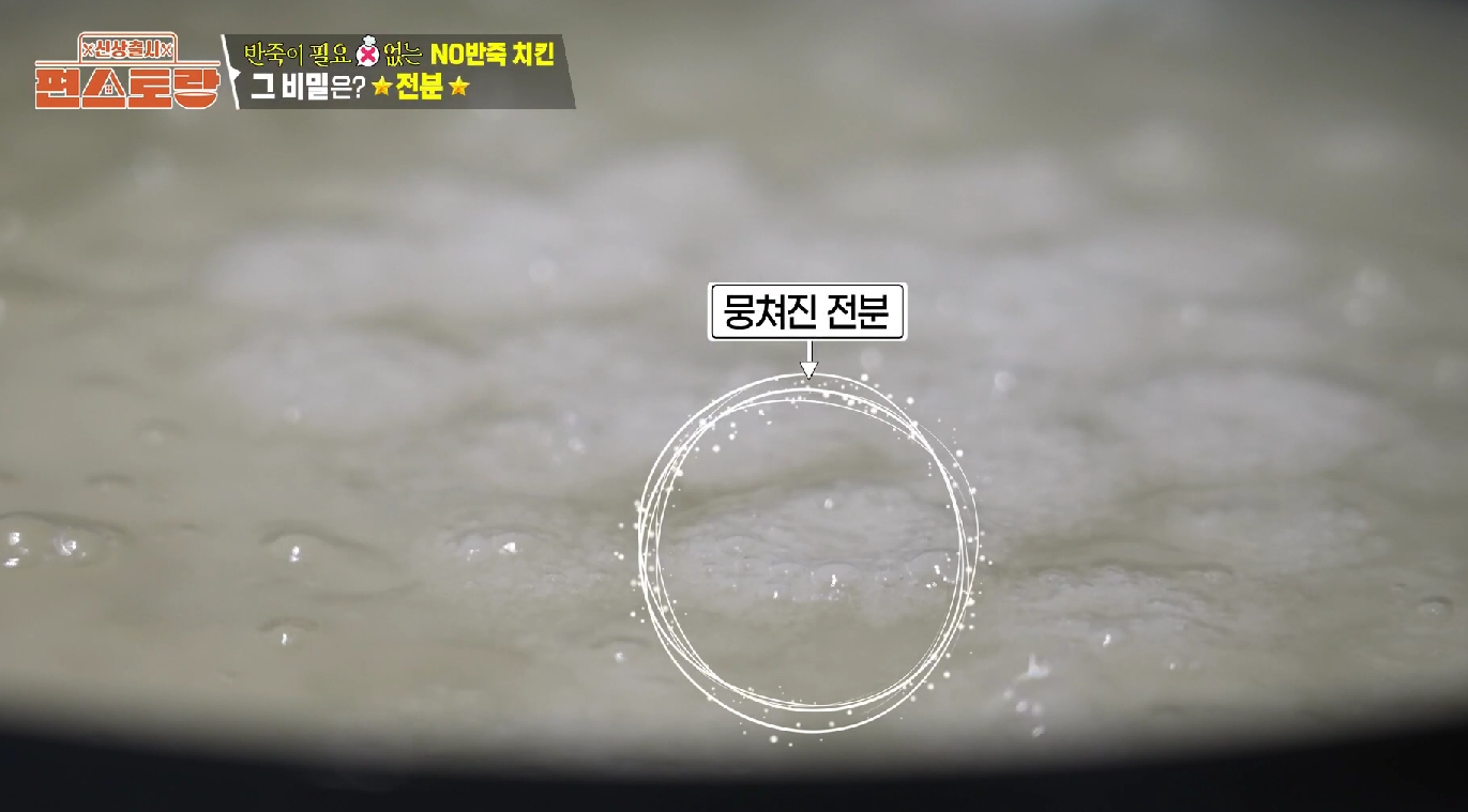 이 비법은 치킨의 번거로운 밀가루/계란 반죽 과정을 생략하고, 기름과 전분을 섞어 가열할 때 생기는 전분 덩어리를 튀김옷으로 활용하는 혁신적인 조리 방식입니다.
