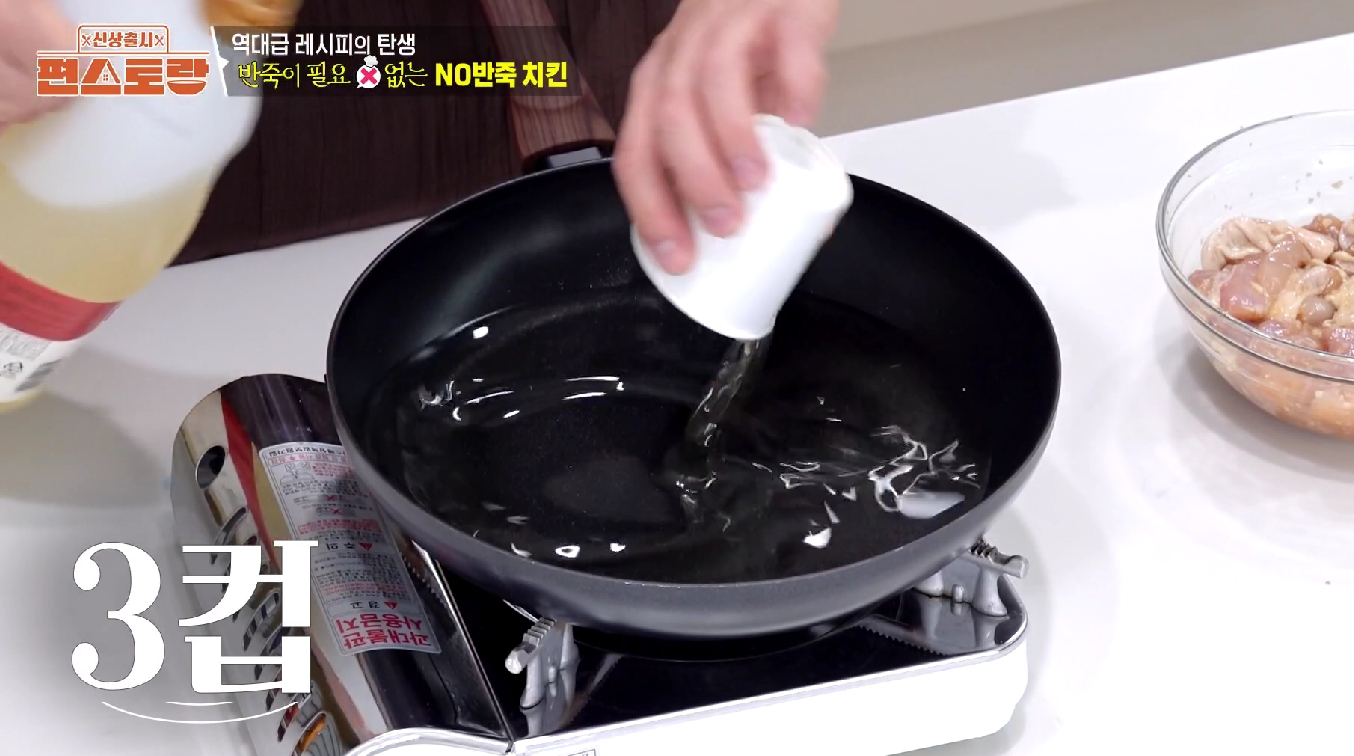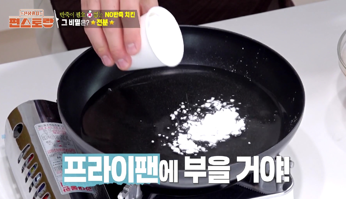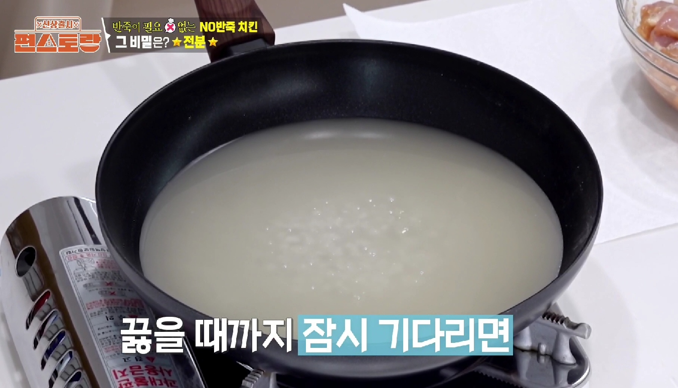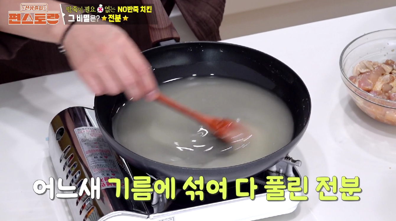 이 비법은 치킨의 번거로운 밀가루/계란 반죽 과정을 생략하고, 기름과 전분을 섞어 가열할 때 생기는 전분 덩어리를 튀김옷으로 활용하는 혁신적인 조리 방식입니다.