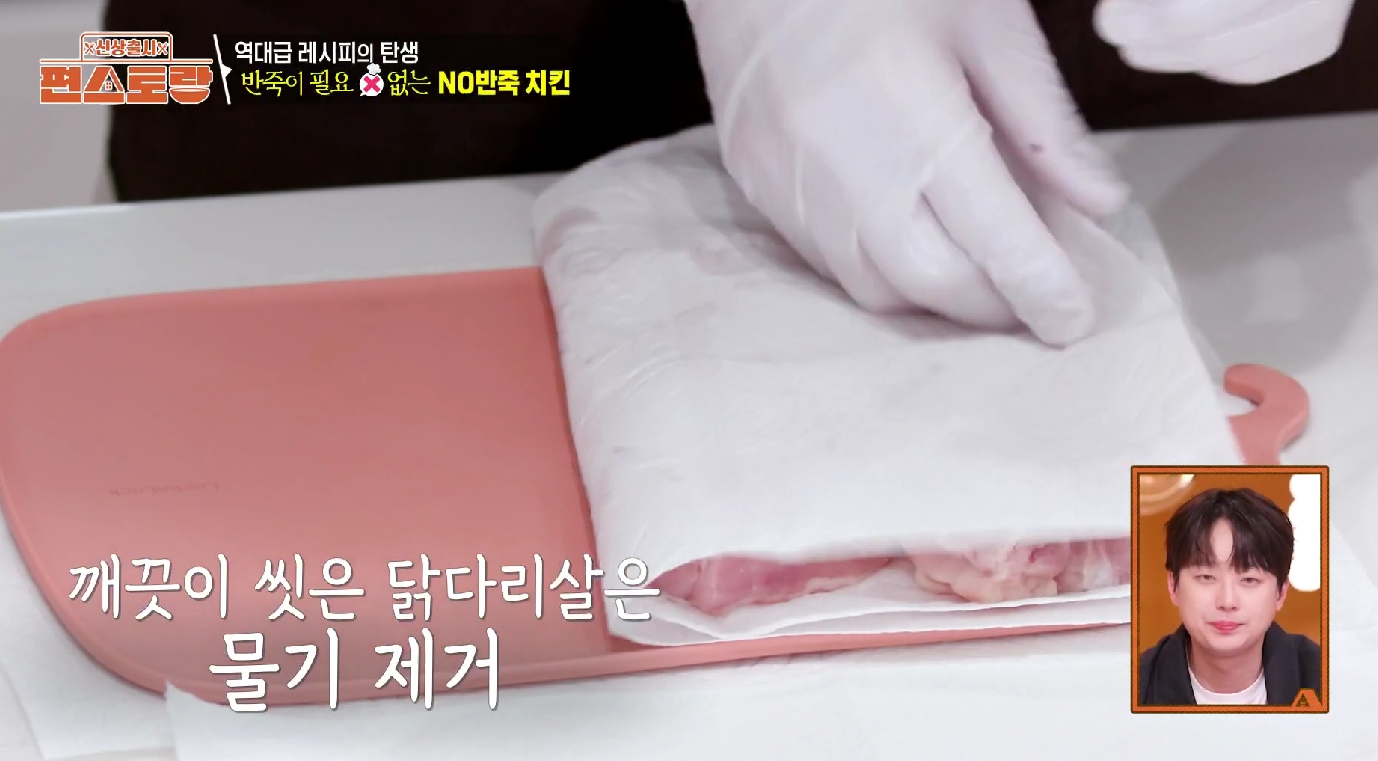- 닭 정육은 흐르는 물에 깨끗이 씻어 키친타월로 물기를 완벽하게 제거해야 합니다. (물기가 남으면 기름이 튀고 튀김옷이 잘 붙지 않음)