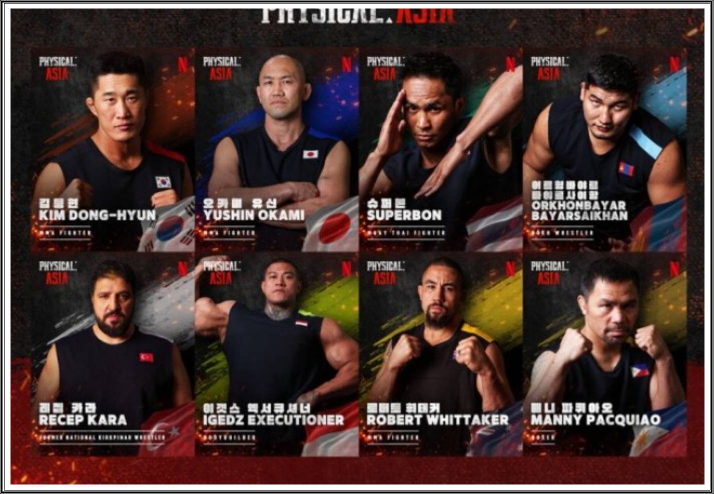 피지컬: 아시아는 아시아 8개국의 정예들이 국기를 걸고 펼치는 육체 전쟁이에요.