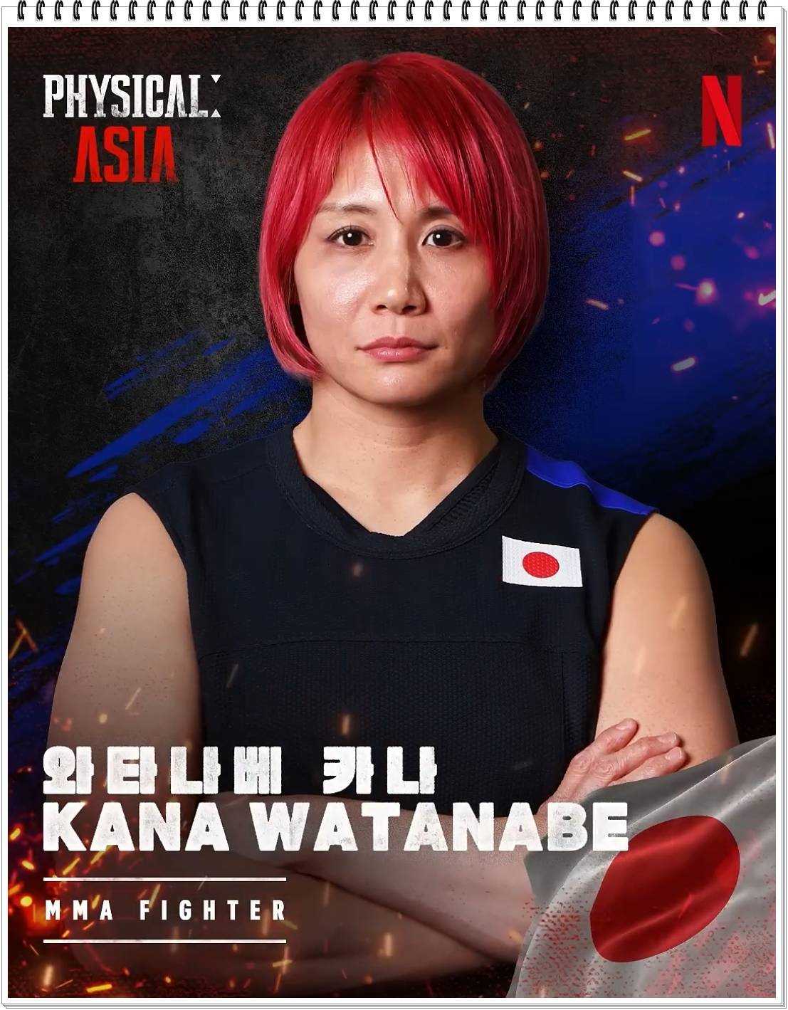 | 와타나베 카나 | 인빅타 FC·벨라토르 활약 MMA 선수. 유도 기반 서브미션과 실전 판단력. |