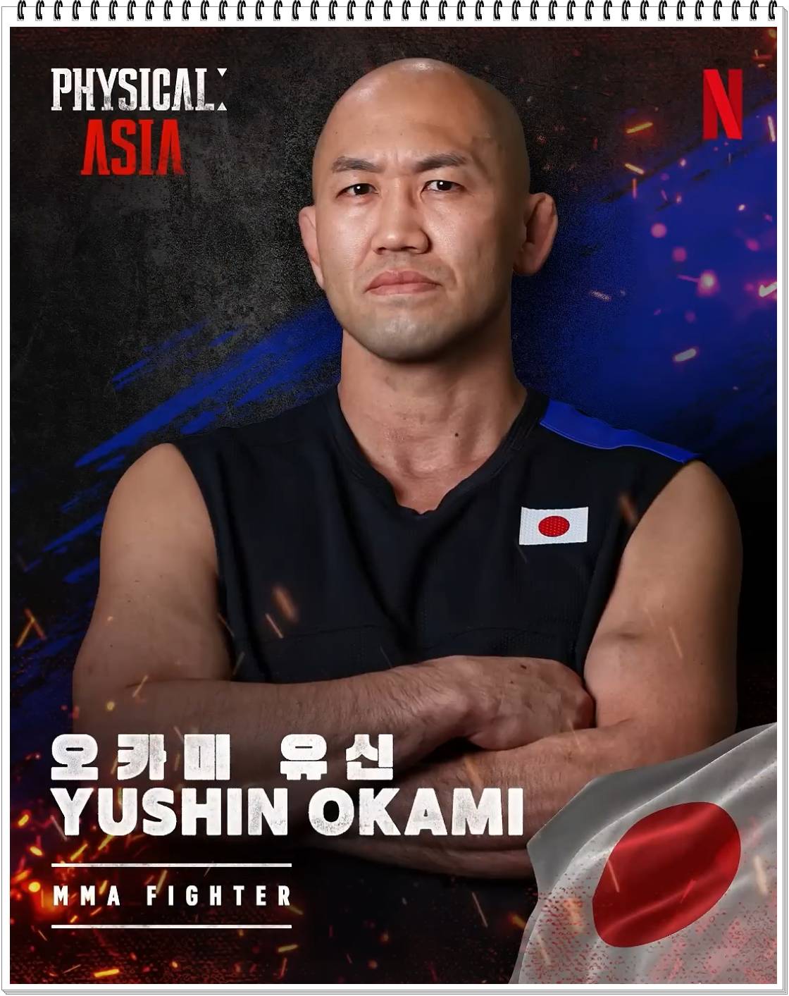 피지컬 아시아 일본 참가자는 ‘스포츠 강국’의 위상에 걸맞게 UFC, 유도, 야구, 수영, 레슬링, MMA 등 정상급 경력을 가진 6인 팀입니다. 오카미 유신의 리더십 아래 철저한 전략과 폭발적인 기술로 승부를 노리죠. 아래에 멤버별 배경을 정리해 봤습니다.