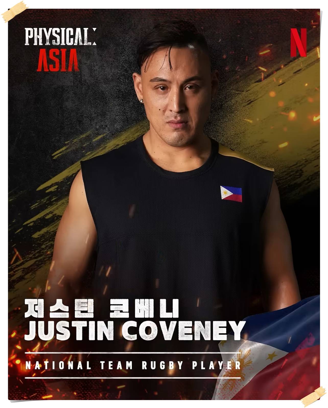 | 저스틴 코베니 | 럭비 선수. 필리핀 대표 캡틴, 프로 리그 장기 활약. 180cm 탄탄 체격의 충돌력 전문. |