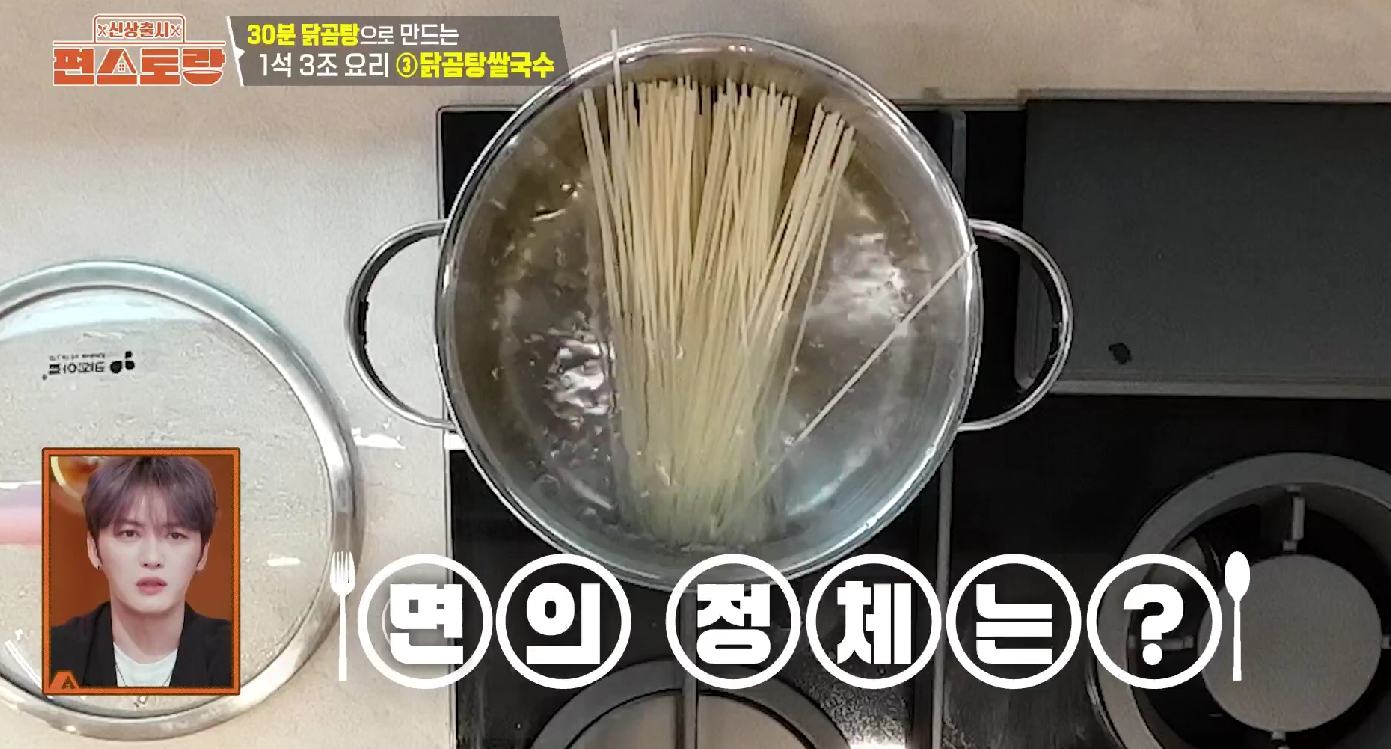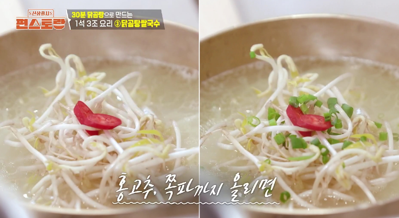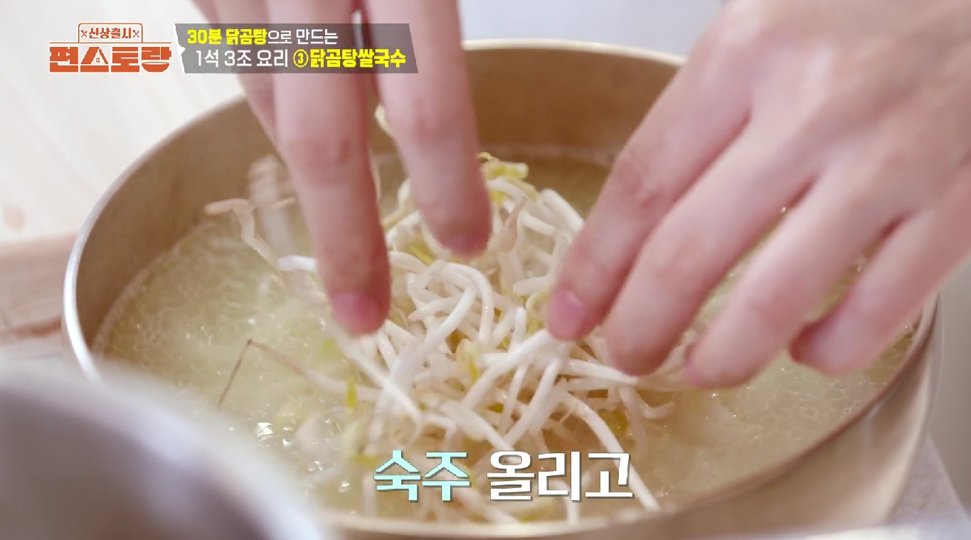 이 요리는 닭 육수가 맛의 90%를 결정합니다. 이전에 만든 이정현의 닭곰탕 국물을 냉장고에 보관해 두었다가 사용하면 곰탕의 깊은 맛이 그대로 살아납니다. - 면 삶기: