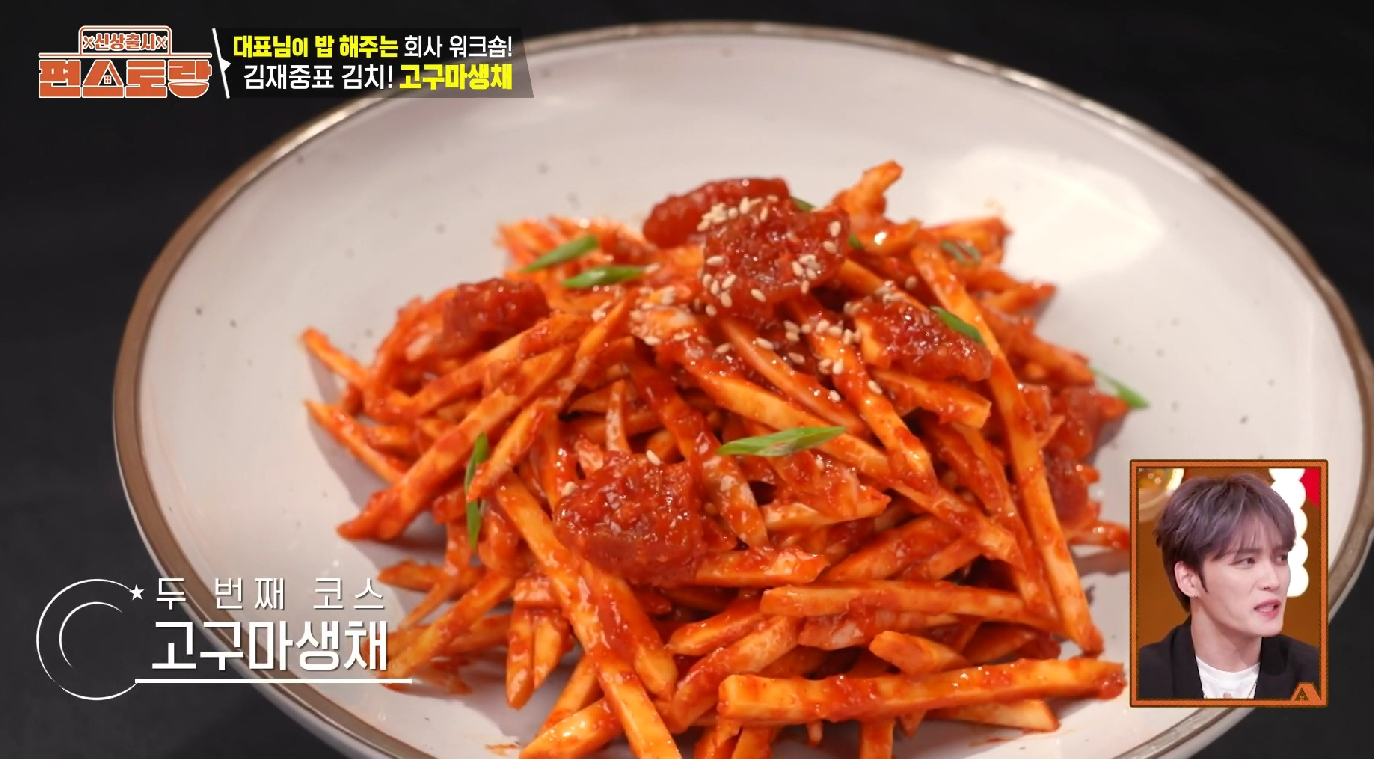 [자취생 활용]: 이 김재중 고구마생채 레시피는 자취생 밑반찬으로 완벽했습니다. 만들어 두면 며칠 동안 맛있는 반찬이 되어주고, 특히 삼겹살이나 차돌박이 같은 느끼한 고기 요리와 함께 먹으니 기름진 맛을 확 잡아주었습니다.