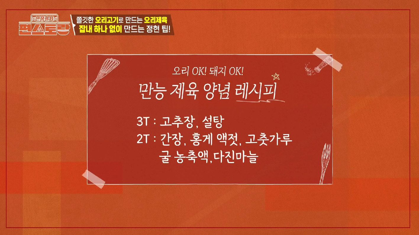 만능 요리사 이정현 님이 공개한 오리제육은 특유의 잡내 때문에 망설였던 분들의 걱정을 싹 날려줄 특제 양념과 비린내 제거 비법이 담겨 있습니다.