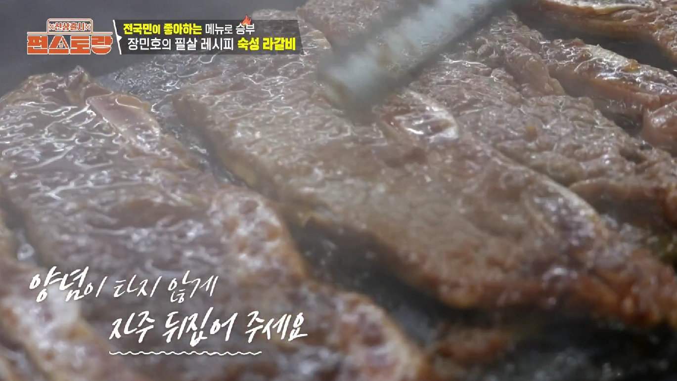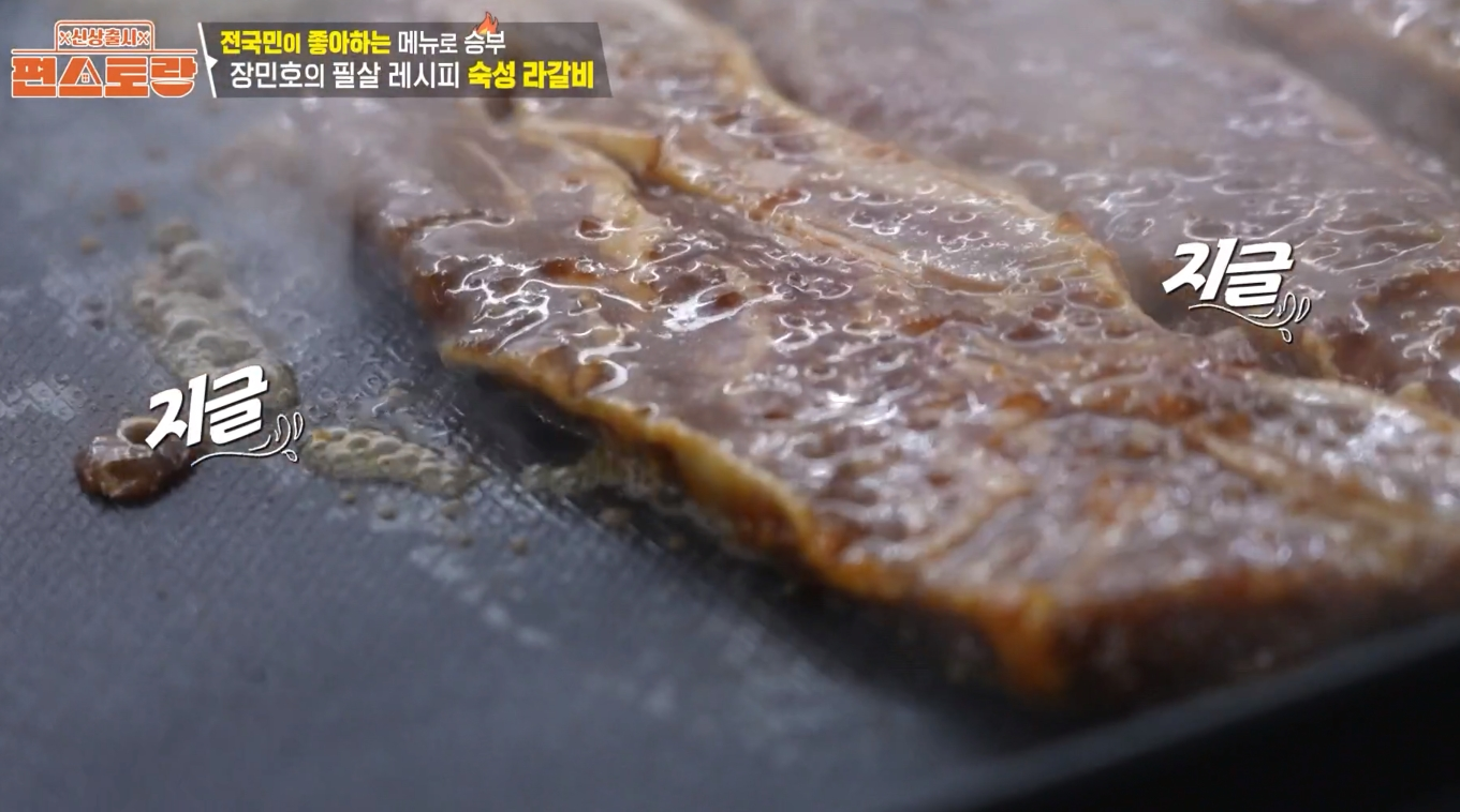 - 이틀 동안 정성껏 숙성한 갈비를 달군 팬에 노릇하게 굽고 송송 썬 쪽파를 올려 마무리하면 장민호 숙성 라갈비 레시피 완성입니다.