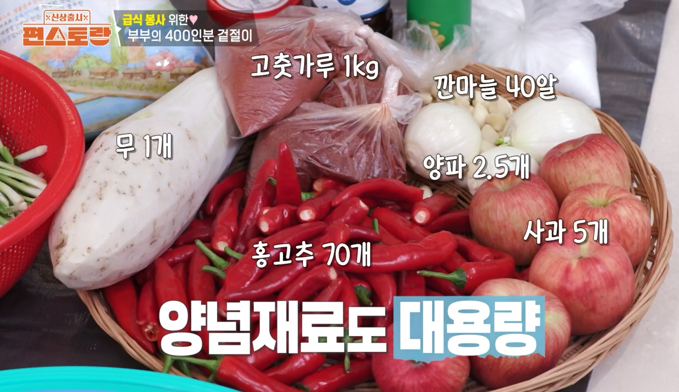 - 액젓/단맛: 까나리액젓 14T, 새우젓 4T, 매실청 4T, 설탕 10T
