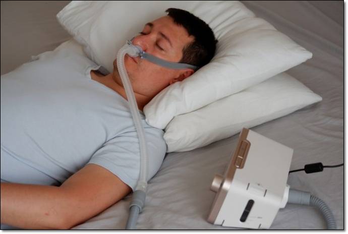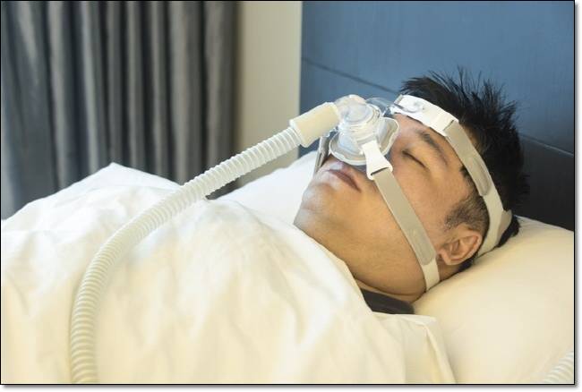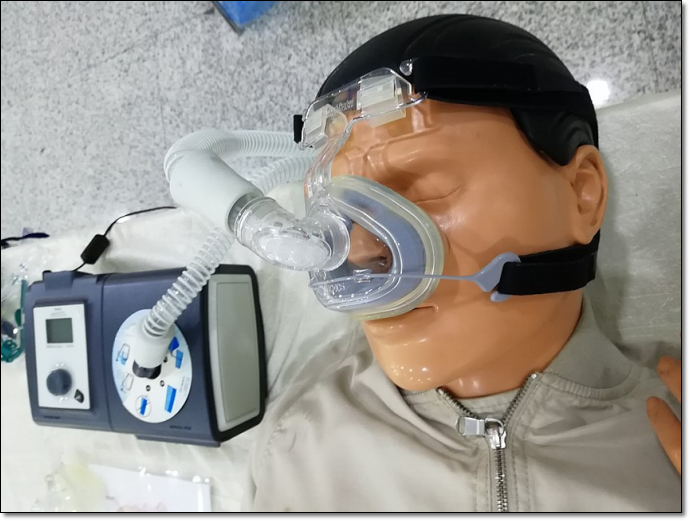 잠자는 동안 일정한 공기 압력을 통해 기도를 열어주는 장비로, 중등도 이상의 환자에게 효과적입니다.