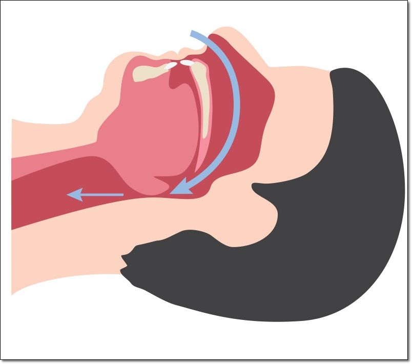 수면 중 기도가 일시적으로 막히거나 좁아져서 호흡이 원활히 이뤄지지 않는 현상, 즉 수면무호흡 증상일 수 있습니다.