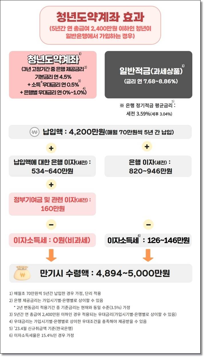 전 소득 구간에서 월 납입액 최대 70만 원까지 동일한 정책지원을 받을 수 있게 되어, 납입 여력 있는 청년도 더 큰 혜택을 누릴 수 있습니다.