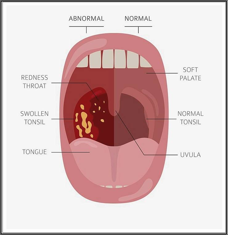 음식이 목에 닿을 때 찌릿한 느낌이 든다. - 편도 표면에 흰색 점이 보인다
