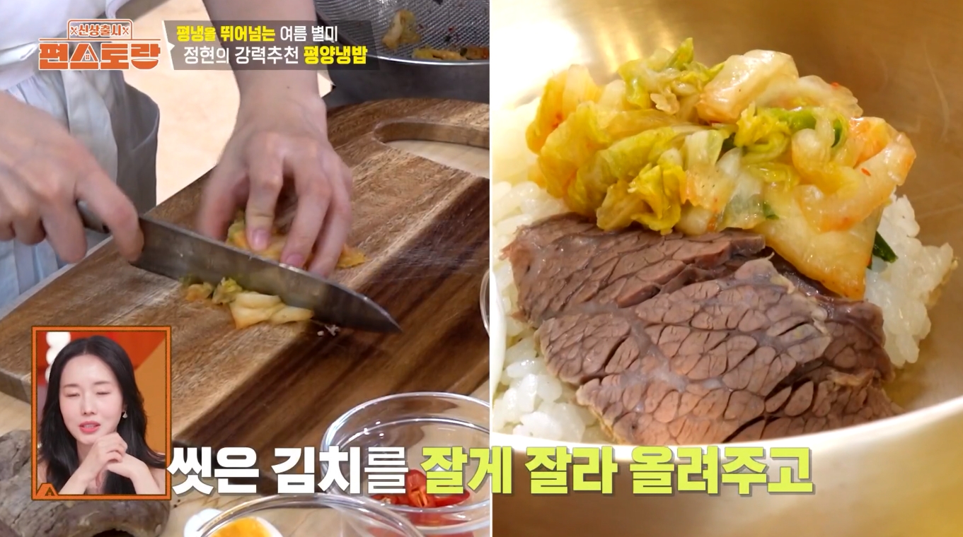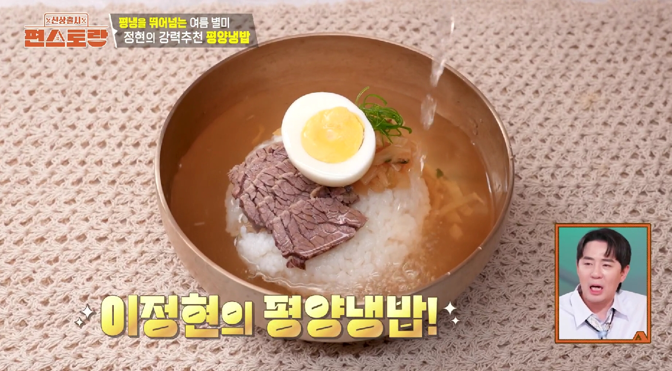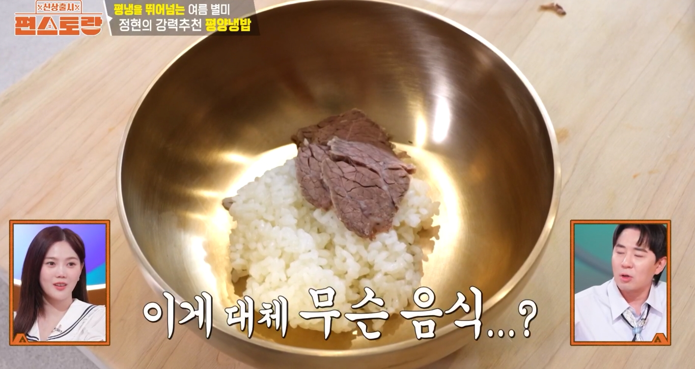 그럴 때 '만능여신' 이정현 님이 추천한 별미가 있었으니, 바로 평양냉밥! "평냉보다 더 매력적"이라는 한마디에 호기심이 폭발했습니다.