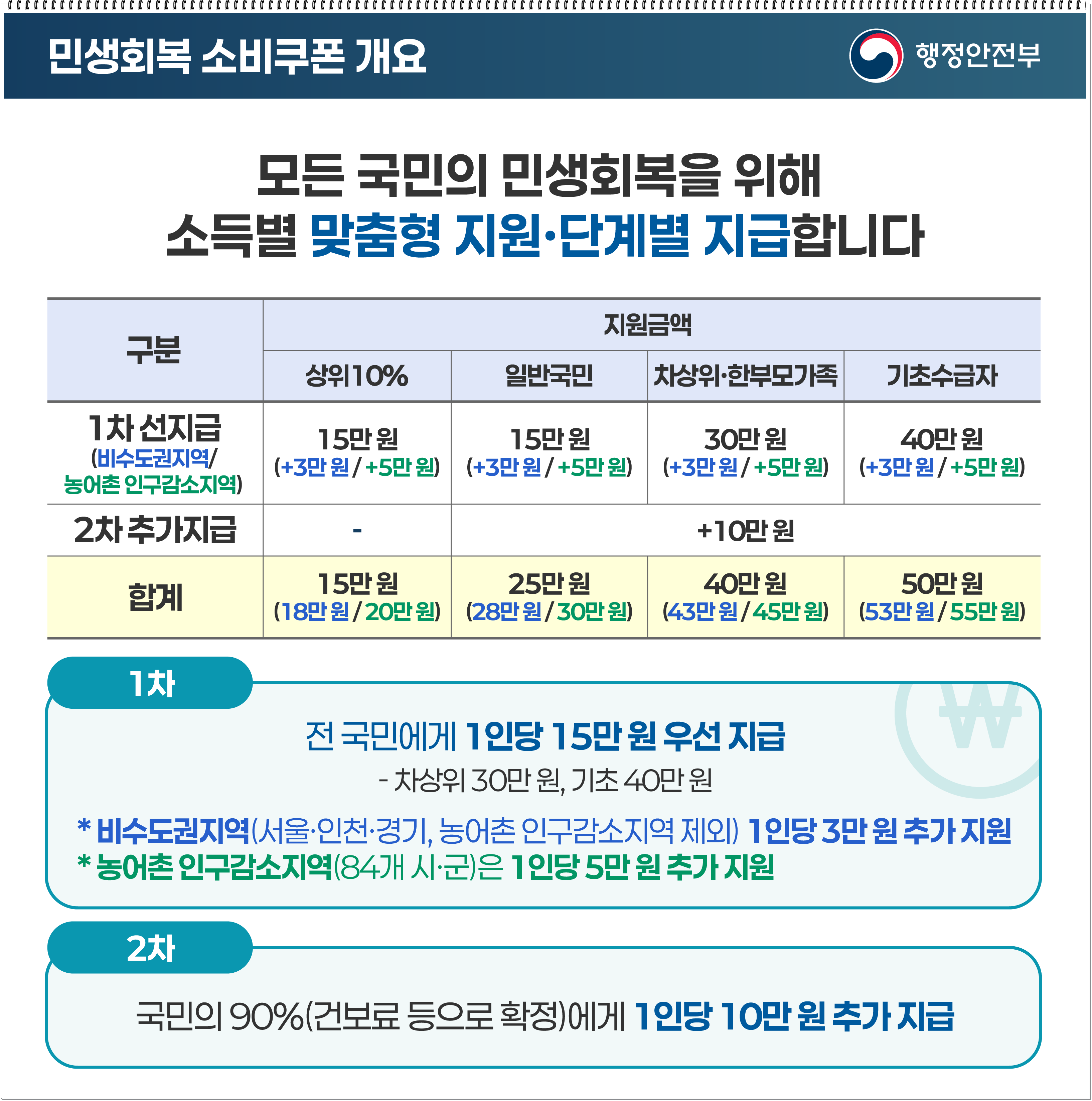 - 총 수령 가능액: 1·2차 합산 및 지역·계층 추가 지원을 포함하면 최대 55만 원까지 가능