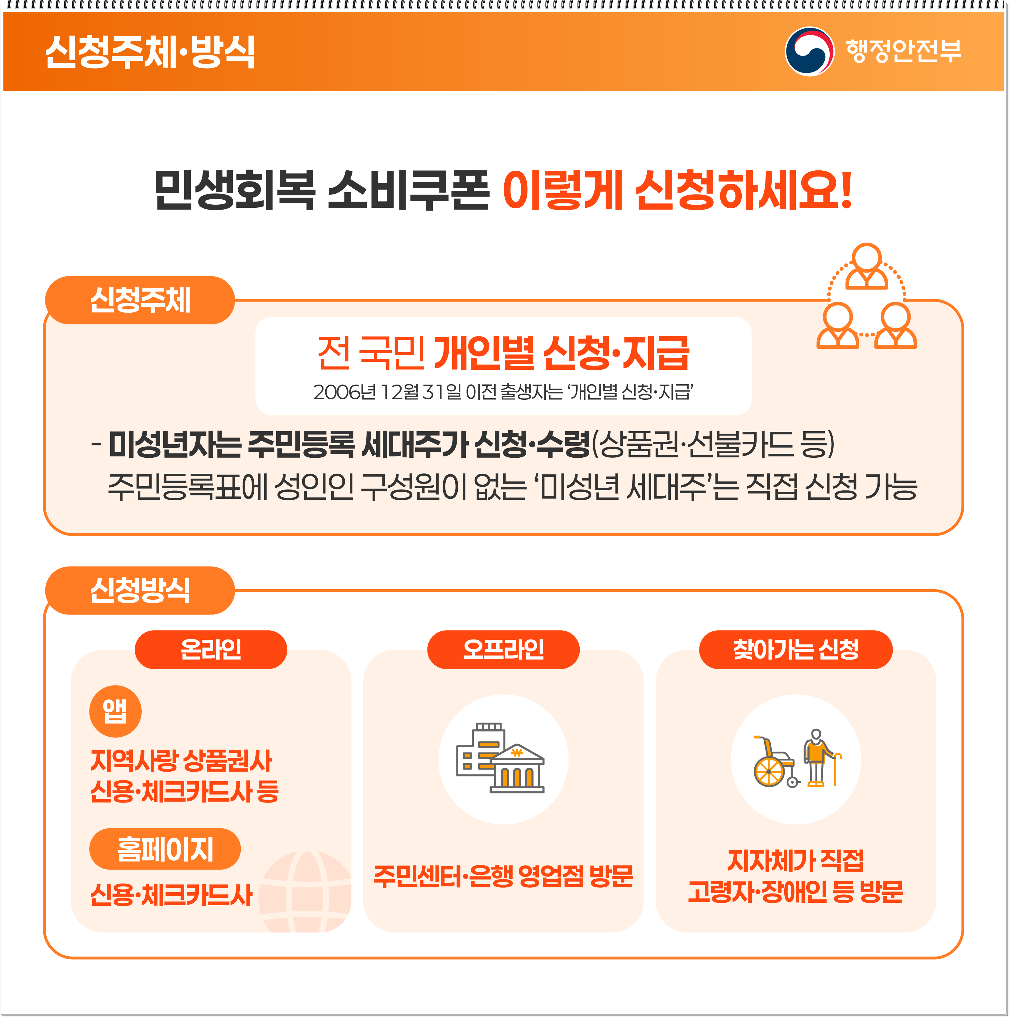 - **미성년자(2007년 1월 1일 이후 출생자)**는 세대주 명의로 신청해야 함